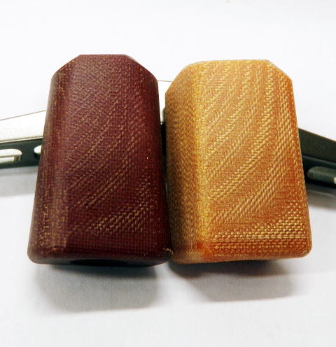 | ABUカーディナルROBOシングル発売記念として作った、カーディナルの為のクロスベーク新形状ヒネリのハンドルノブです。 *CADでの設計時に切削用の仮想補助線を描き入れ、その線がKの文字に見えるので「Kタイプ」としました。 従来品と同様にノブ各種はシマノAタイプやダイワSサイズ基準で作ってますので、多くのリールと互換性があるでしょう。もちろんベアリングが2個入っていますから、無音で滑らかな回転で釣りに集中できます。 ☆クロスベーク(布ベーク) 布繊維を基材としたフェノール樹脂による熱硬化性樹脂です。 不思議と水に濡れても滑り難く、まるで湿っとりと吸い付く質感が魅力かと思います。 ナイフや包丁のグリップ、または銃火器などのグリップなどにも使用されている歴史も定評もある樹脂です。 加工したばかりは黄色〜茶色ですが、経年変化によって徐々に深い琥珀色に変化して行きます。 表面仕上げは、あえて#1000程度な研磨布でボリッシュするだけにし、微細なザラツキを残してあります。 ユーザー様の方でもっと細かく磨きますれば、濃い飴色の光沢も可能かと思います。 |
